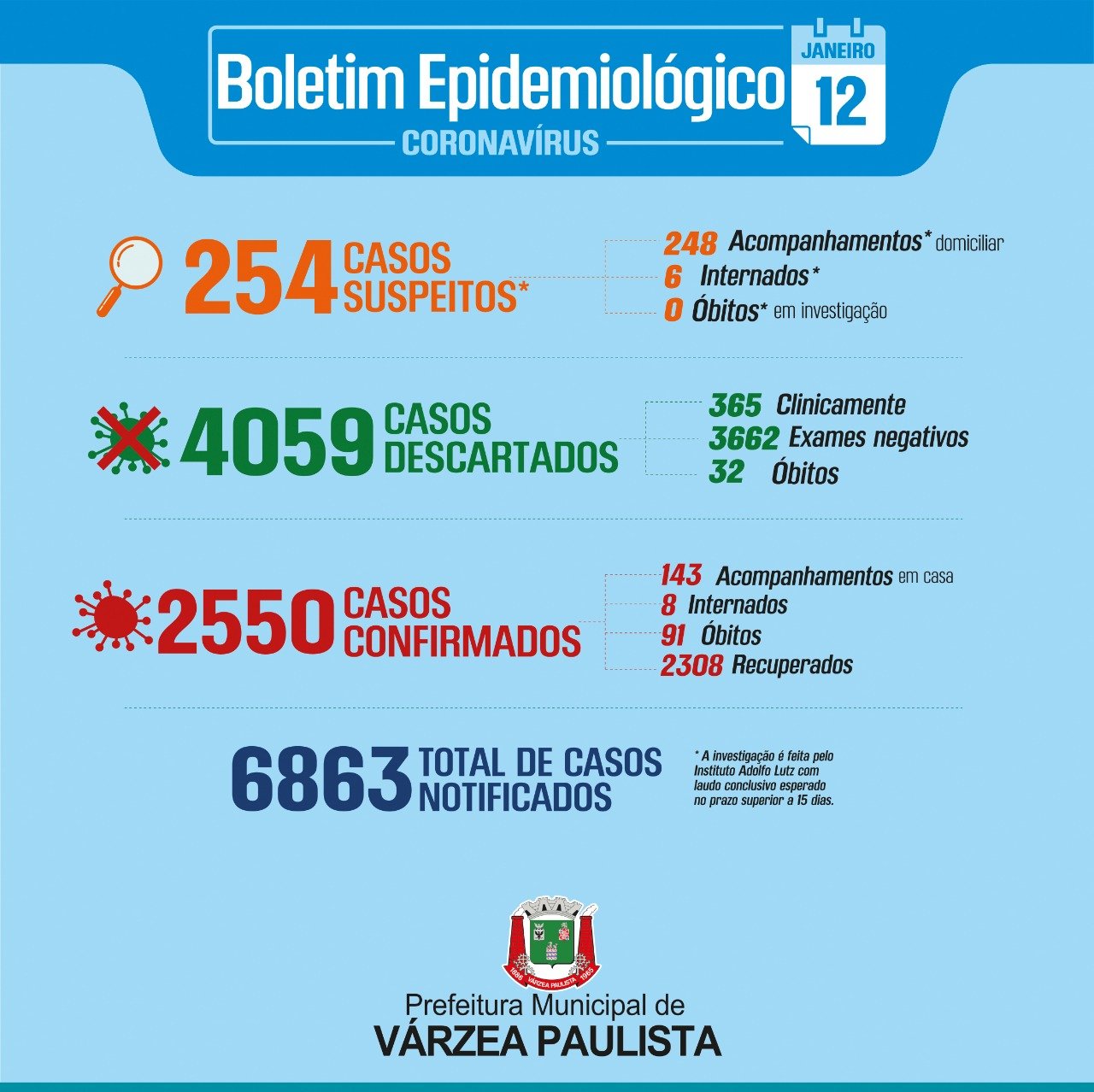 A Prefeitura divulgou mais um Boletim Epidemiológico nesta terça-feira (12). Entraram 97 casos novos, sendo: 19 positivos e 78 negativos. Foram registrados 3 Óbitos: