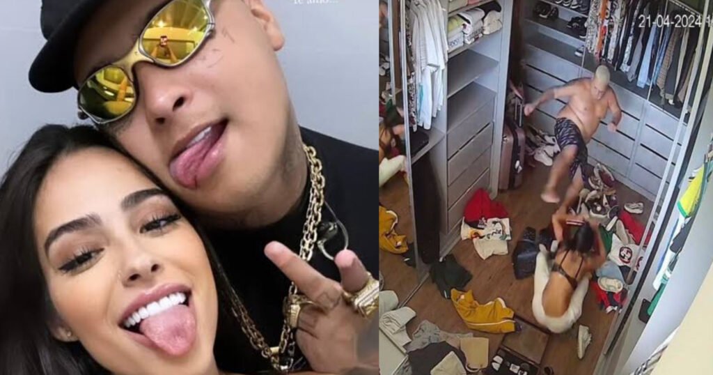 Nas imagens divulgadas pelo jornalista, o cantor aparece dando um chute na ex-namorada, enquanto a mesma está sentada no chão.