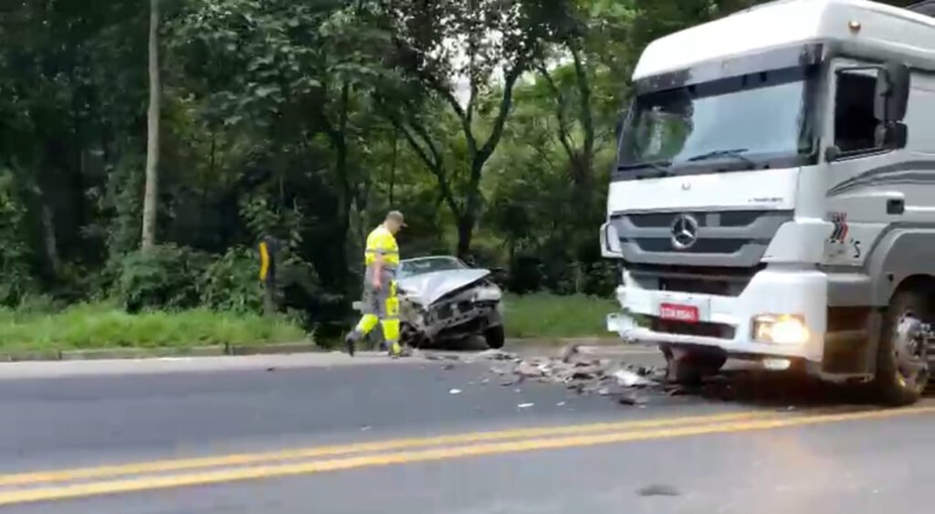 Veículo bate de frente contra caminhão na Rod. Edgard Máximo Zambotto.