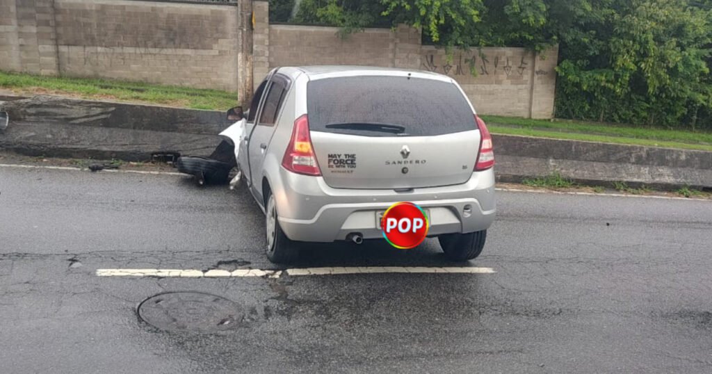 Veículo bate na mureta de proteção da Avenida Antônio Pincinato, nesta terça (23) chuvosa.