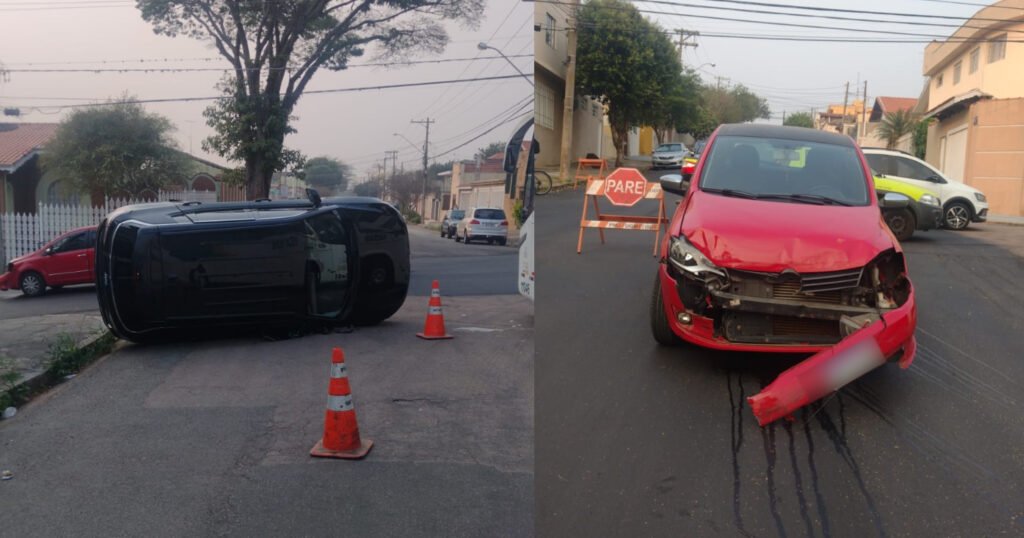 Apesar de um dos veículos capotar, ninguém ficou ferido.