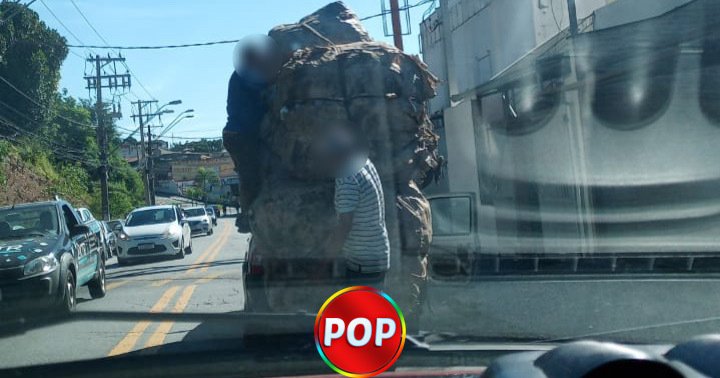 Nosso seguidor flagrou o motorista arrumando a carga, “Por muito pouco, a cagar não caiu em cima dos pedestres na calçada” disse o seguidor.