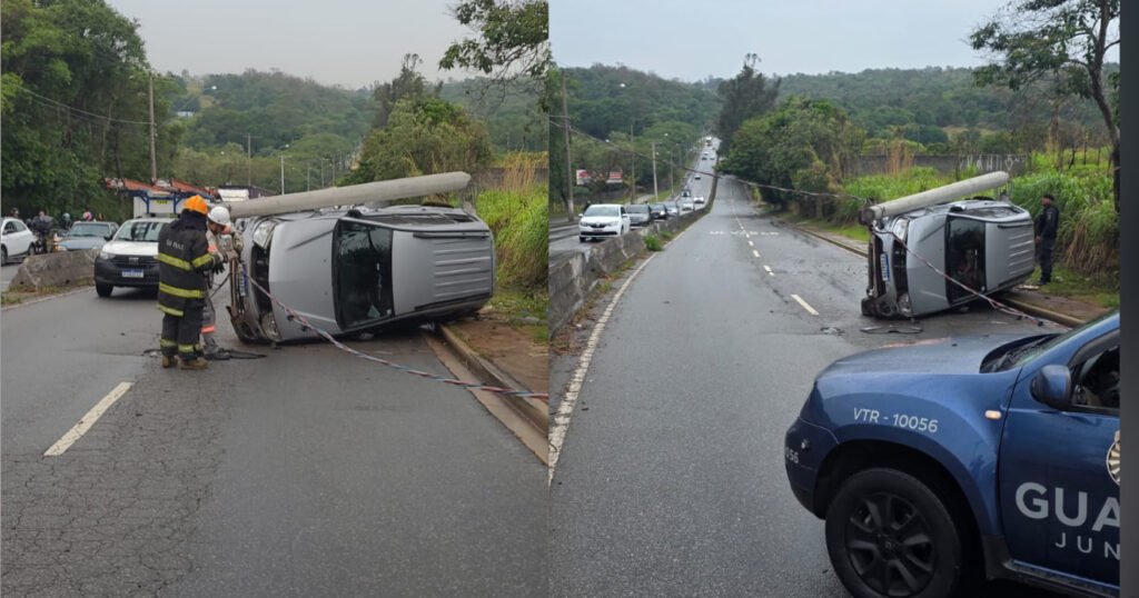 Veículo derruba poste e mobiliza equipes de resgate em Jundiaí