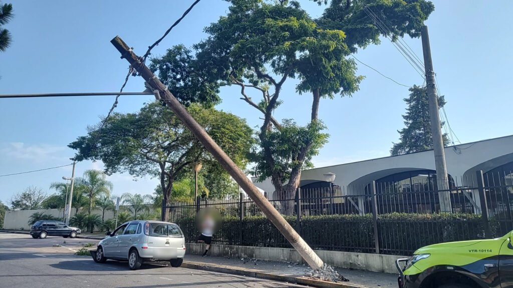 Na manhã deste sábado (11), um veículo acabou derrubando um poste de energia elétrica em Jundiaí.