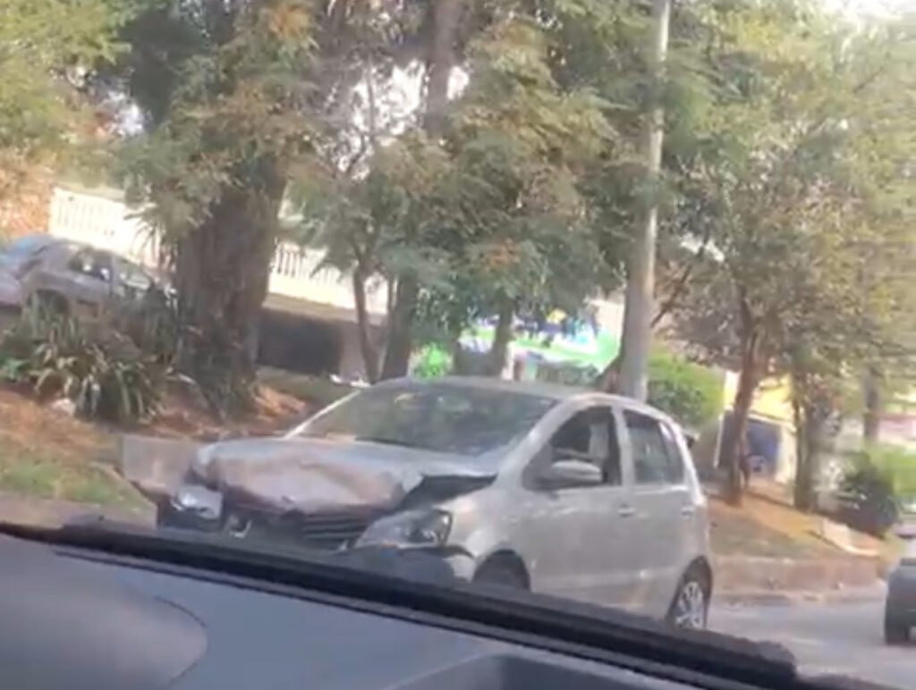 Na tarde deste sábado (24), um veículo ficou com a frente parcialmente destruída após um acidente de trânsito.