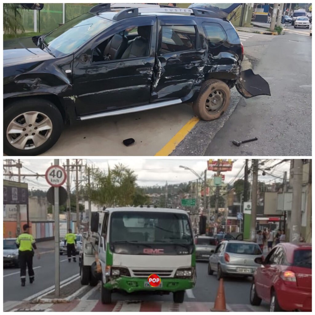 Veículo fica parcialmente destruído após ser atingido por caminhão na Av. Fernão Dias.