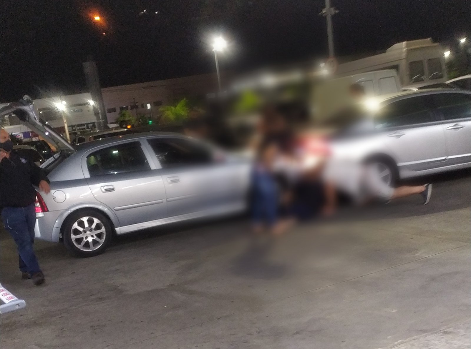 Segundo informações, por um descuido um veículo Astra bateu na traseira do Honda Civic que estava na sua frente, os veículos ficaram travados dentro do estacionamento do supermercado.
