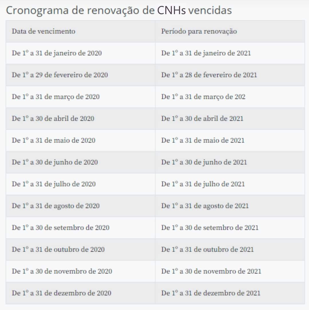 Segundo a nova resolução, os documentos de habilitação vencidos em 2020 ganharam mais um ano de validade. Com isso, a renovação das CNHs vencidas em 2020 ocorrerá de forma gradual, de acordo com um cronograma estabelecido no documento.