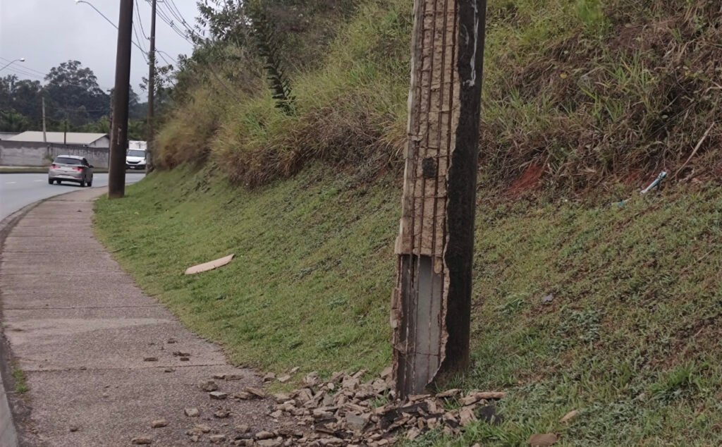 Xororó Motoboy denúncia poste que está esfarelando e pode ser derrubado facilmente, em Jundiaí.