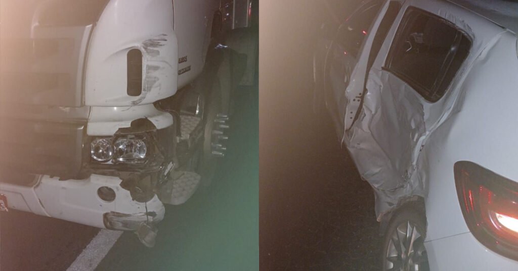 Na noite deste sábado (29), uma carreta e um veículo se envolveram em um acidente de trânsito.